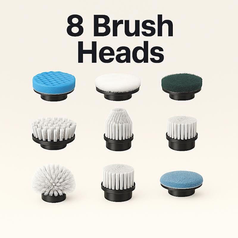 - Detail Brush – Targets tight spaces, faucets, and drain edges with precision.